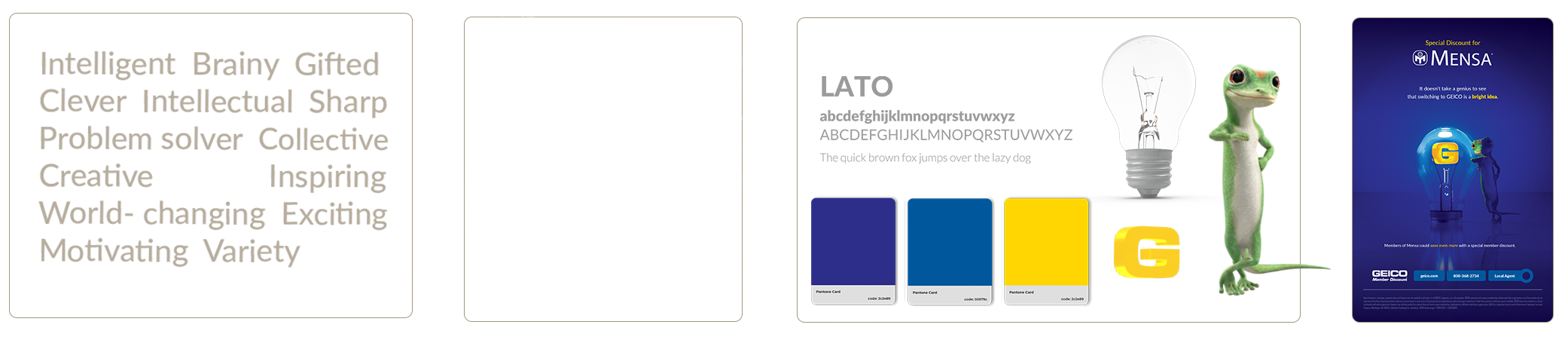 As a new member of the GEICO family, we faced the exciting challenge of creating a marketing campaign that would resonate with Mensa members, a highly diverse and intelligent group of individuals. Our goal was to find a unique approach that would connect with this audience without appearing overly pushy or gimmicky.
